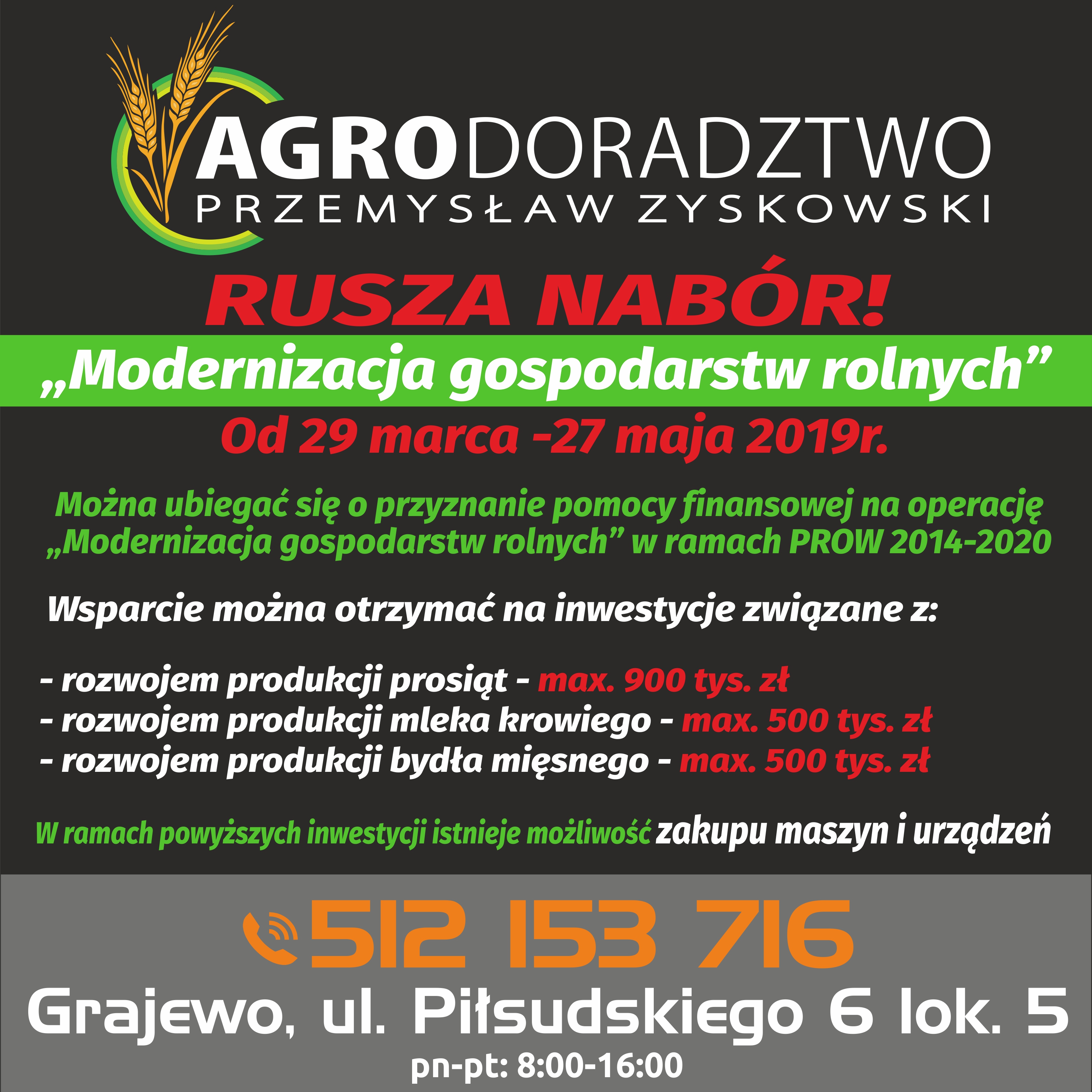 Nabór na "Modernizację gospodarstw rolnych" ruszył 29 marca i potrwa do 27 maja 2019 r.
